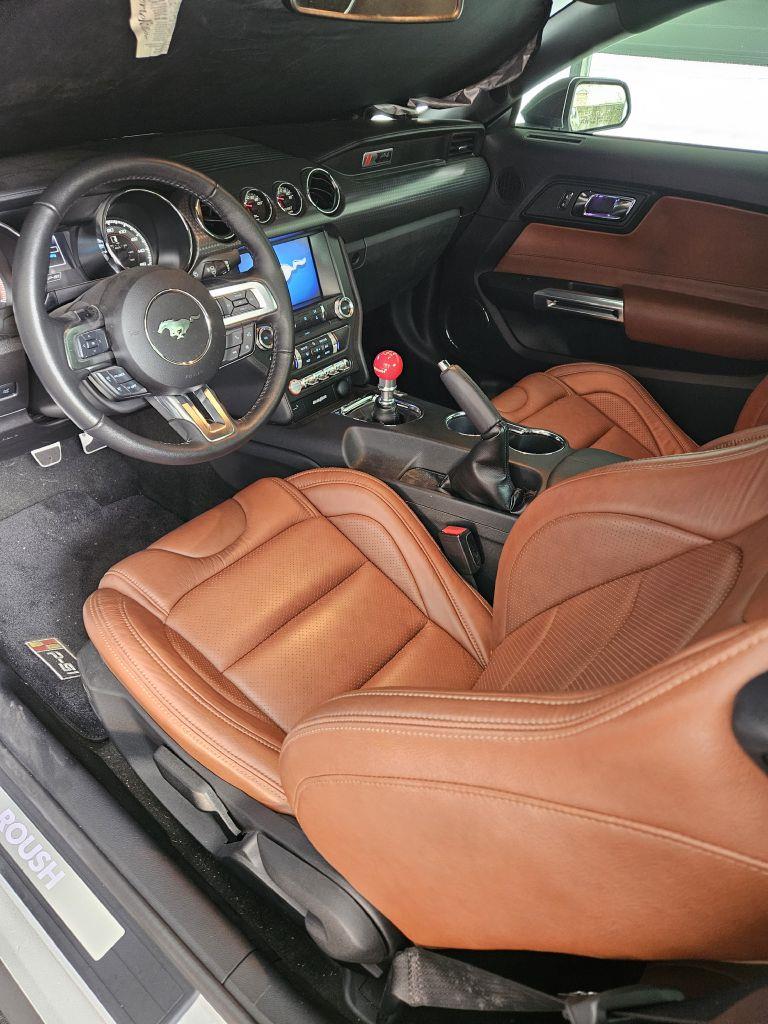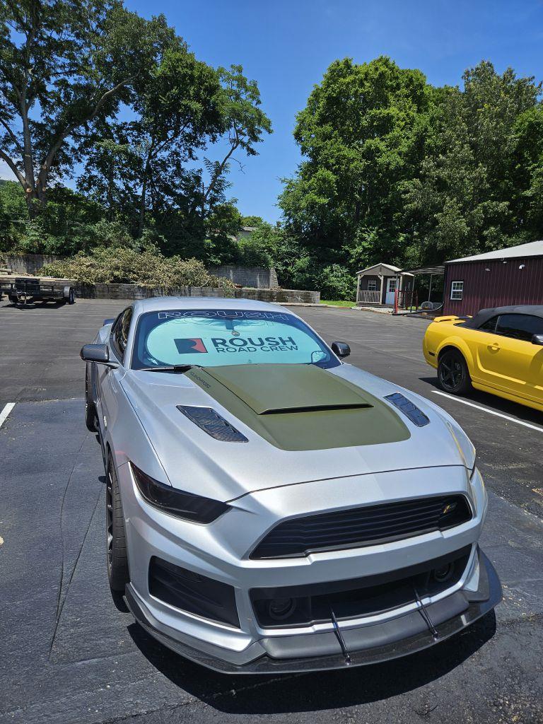 2017 FORD MUSTANG ROUSH P51 Incredible 2017 Ford Mustang (Roush P-51). This is 1 of only 51 ever made, Number 22, this is one special, rare, and FAST car! Now if you are a Mustang fan and let's face it, who isn't? Then you know the name Jack Roush. It has been said that the P-51 is the culmination of Jack Roush's personal passion for both the aviation and performance cars. Roush Performance started with a Premium 2017 Mustang and added approximately, $42,000.00 to the price with performance upgrades. The P-51 Mustang is pushing 727 Horsepower via the 5.0 Coyote that is equipped with the Roush 2.3L TVS supercharger stage II. The list of goodies goes on, most are performance directed, and others, like the Bomber Jacket styled leather interior, are for comfort. The blending of aviation and cars has been happening for years, the 1959 Cadillac featured twin rocket taillights. The Ford Galaxie had rounded rocket taillights, but nothing comes close to flying like this P-51 mustang. Also, just like its namesake, when you push the start button, it makes the grandest noise! Options for this Ford Mustang Roush P-51 include: 6 speed manual transmission with special carbon brakes (option with the manual cars only), air conditioning, cruise control, GPS, power brakes, steering, windows, locks, mirrors, anti-lock brakes, tilt steering wheel, traction control, three way adjustable exhaust, carbon fiber accents, spoiler, matt black louvers, leather interior, ROUSH floor matts.